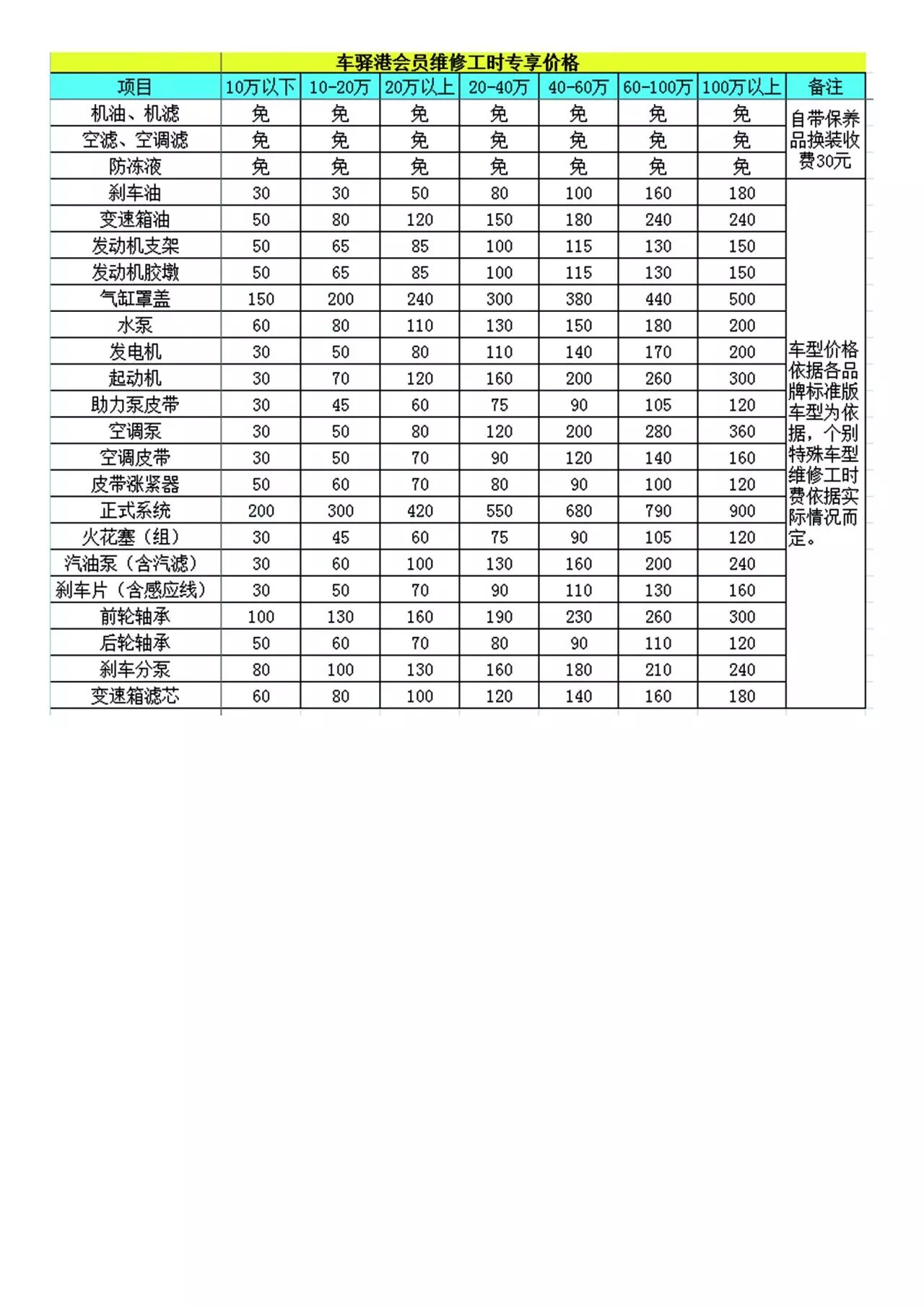 同时,车驿港还推出保养、维修工时、钣金喷漆的明码标价,让您明明白白消费,不用再担心多花冤枉钱。